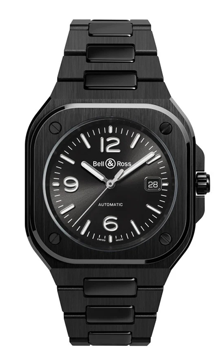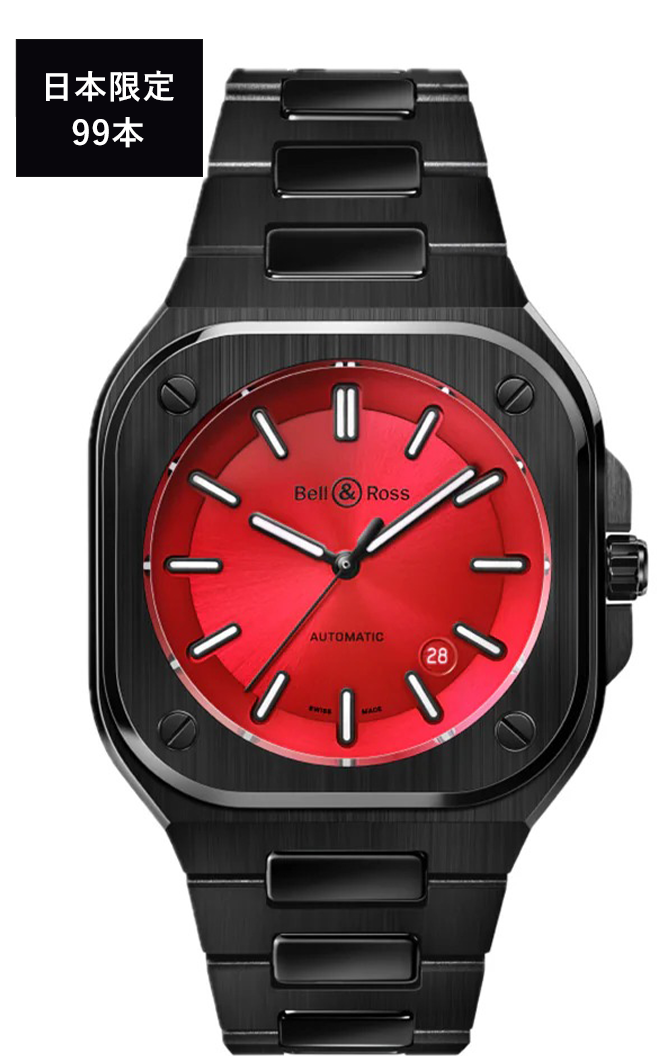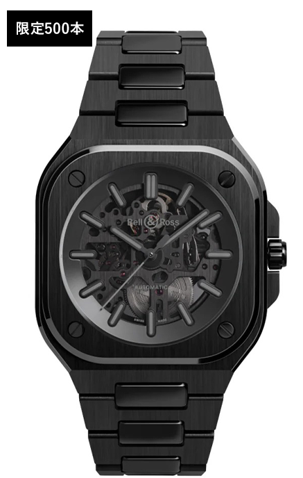 日本限定99本のリミテッドエディション。 この新しいBR-05のバリエーションは、アーバンコレクションを独自のエクスクルーシブカラーで再解釈したモデルです。 航空業界でも採用される素材であるセラミック製のケースは、堅牢性と高い技術性を象徴しつつ、Bell & Rossを代表するカラー「ブラック」に忠実であり続けます。