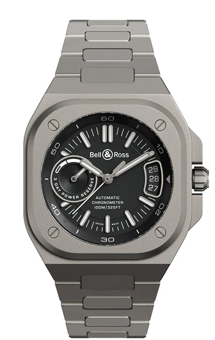 軽量チタンケースに自動巻ムーブメント BR-CAL.323(COSC認定) を搭載した高精度モデル。 Xモチーフの立体的な文字盤が特徴で、約70時間のパワーリザーブと100m防水を備えます。 スポーティかつ洗練されたデザインが魅力の一本です。
