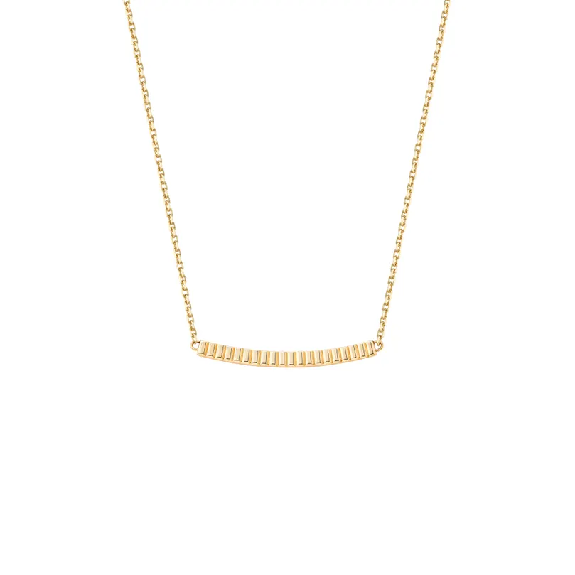 イエローゴールドのキャトル グログラン ブレスレットは、メゾンの歴史にまつわるストーリーを静かに物語ります。織物商の家に生まれた創業者フレデリック・ブシュロンは、幼い頃から織物に囲まれて育ち、その美しさに魅了されていました。そのクチュールへの愛から誕生した「グログラン」のコードは、キャトルの象徴的な4つのコードのひとつとなっています。