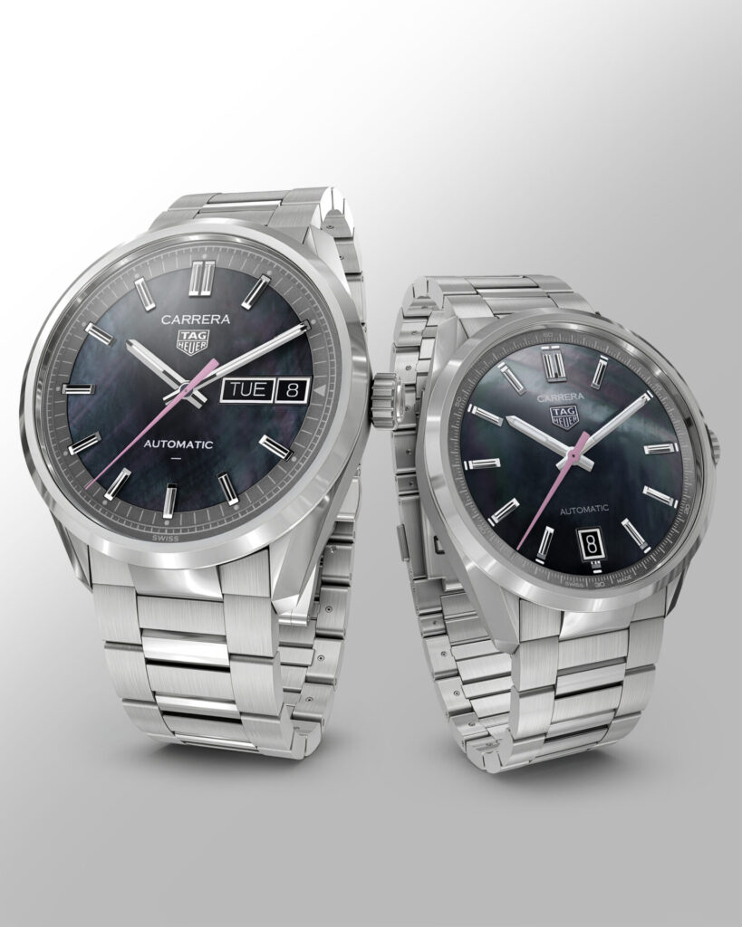 メンズは41mmでレディースは36mmの2タイプとなり、タグ・ホイヤーでは久しぶりのマザー・オブ・パールのリミテッドモデルとなります。