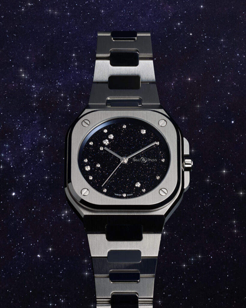 アベンチュリンの文字盤は夜空を表現し、セッティングされたダイヤモンドは単なる装飾ではなく“星”としてわし座を表現しています。