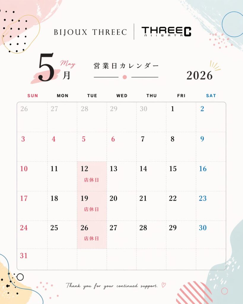 【スリーク新潟、ビジュースリーク】GW期間中の営業日のお知らせ