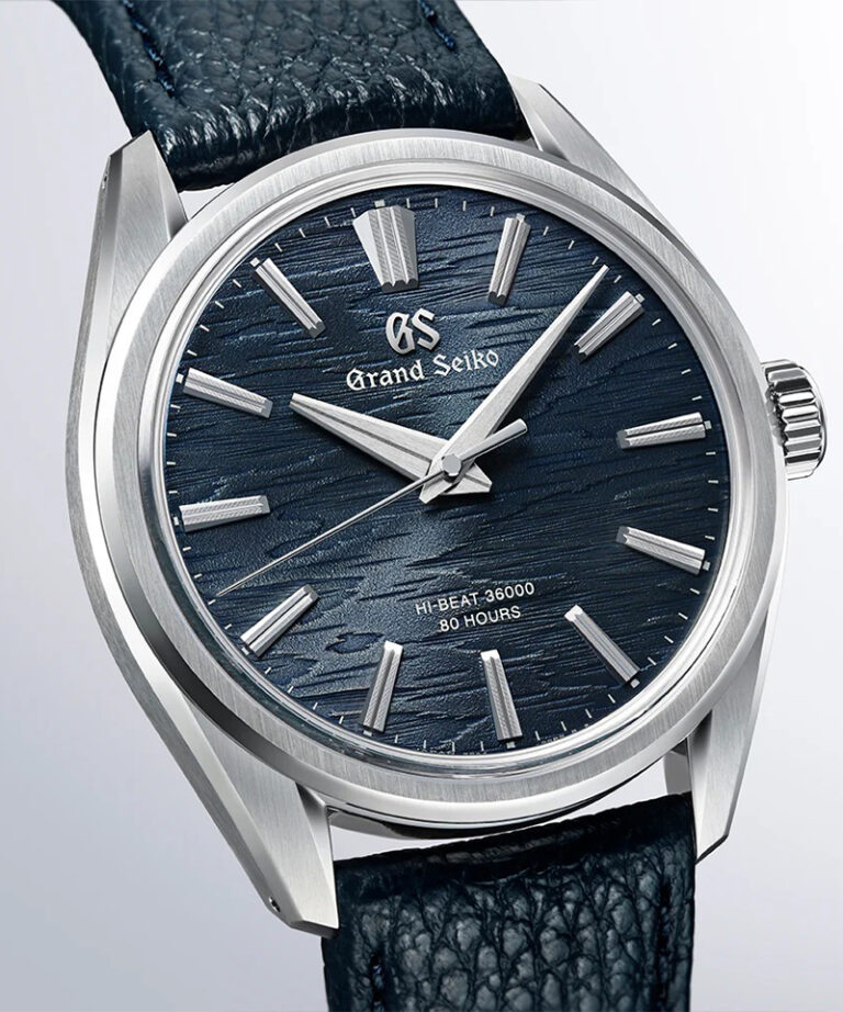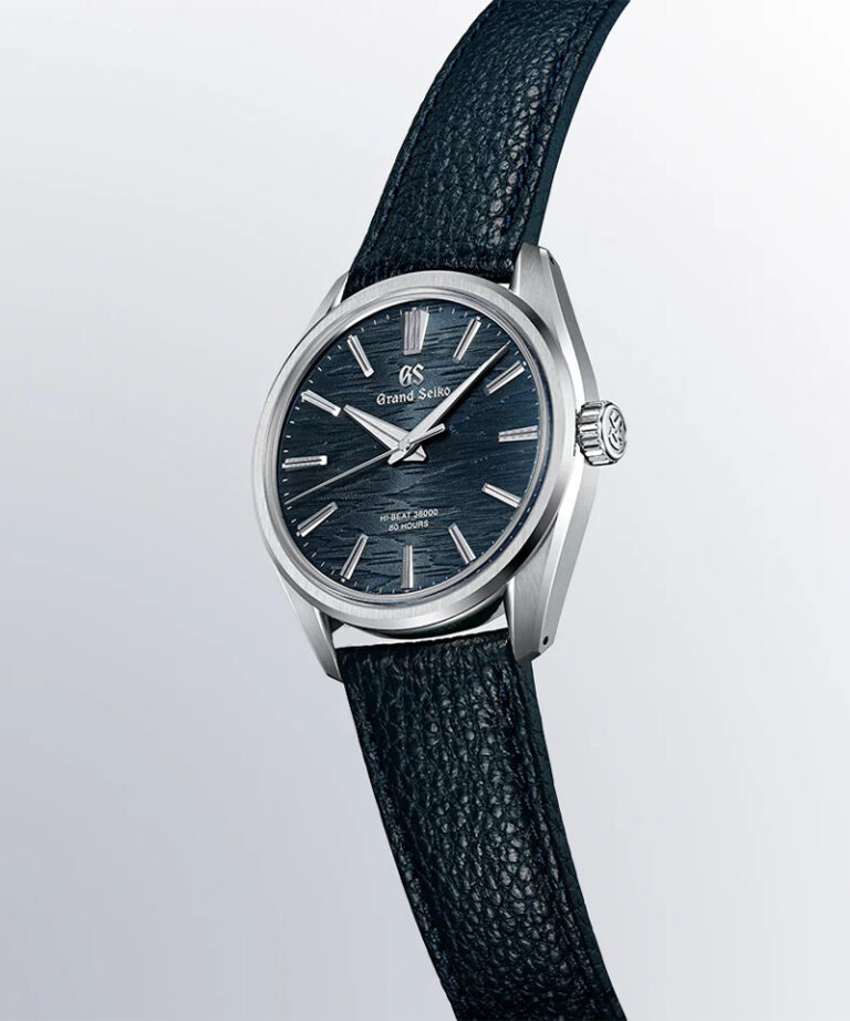 グランドセイコーの真髄と日本の美意識を高い次元で融合させた独自のデザイン文法「エボリューション9スタイル」をベースにした、10振動手巻メカニカルウオッチです。ネイビーカラーのダイヤルは、月あかりに照らされた白樺の樹皮をイメージしました。ステンレススチール製のケースは厚さ9.95mmと薄型に仕上げ、すっきりとしたインデックスやベゼル、ラグの幅が、グランドセイコーのドレスウオッチにふさわしい繊細で優美なる存在感を演出。ムーブメントには、安定した精度につながる毎秒10振動という高い振動数と、最大80時間もの長い持続時間を実現する「キャリバー9SA4」を搭載しています。