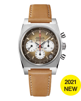 新作「クロノマスター スポーツ」は、ゼニスが50年以上に亘って探求してきたスポーティーなクロノグラフと自動巻クロノグラフ キャリバーの頂点に立つモデル。1/10秒単位の精度で経過時間を計測および表示する最新のエル・プリメロ クロノグラフ キャリバーを搭載したこのモデルは、現代的でありながら見間違えることのないゼニスらしいデザインを備えています。