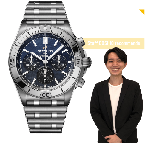「最新が最高」の哲学で創られた、あらゆる活動に適したブライトリングの万能ウォッチの最新型︕クロノマットで初めてべセルにセラミックを採用し、よりスタイリッシュさと堅牢性が増しています。ブレスレットにつけられた小時計=UTCの復活は往年のファンにも大好評です!