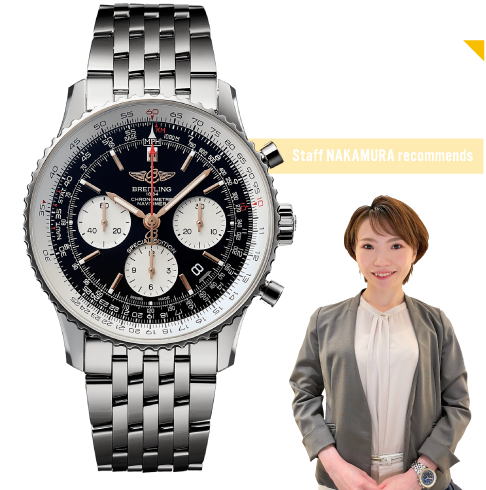1952年の誕生以来、航空時計のアイコニックな存在でまさに不朽の名作であるナビタイマー。惜しまれつつ生産終了となったウィングのロゴを配し、さらに指針やインデックスをゴールドカラーにした日本特別仕様です。ウィングロゴのナビタイマーをゲットできる最後の機会になりそうです。