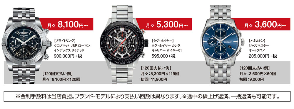 ※金利手数料は当店負担。ブランド・モデルにより支払い回数は異なります。